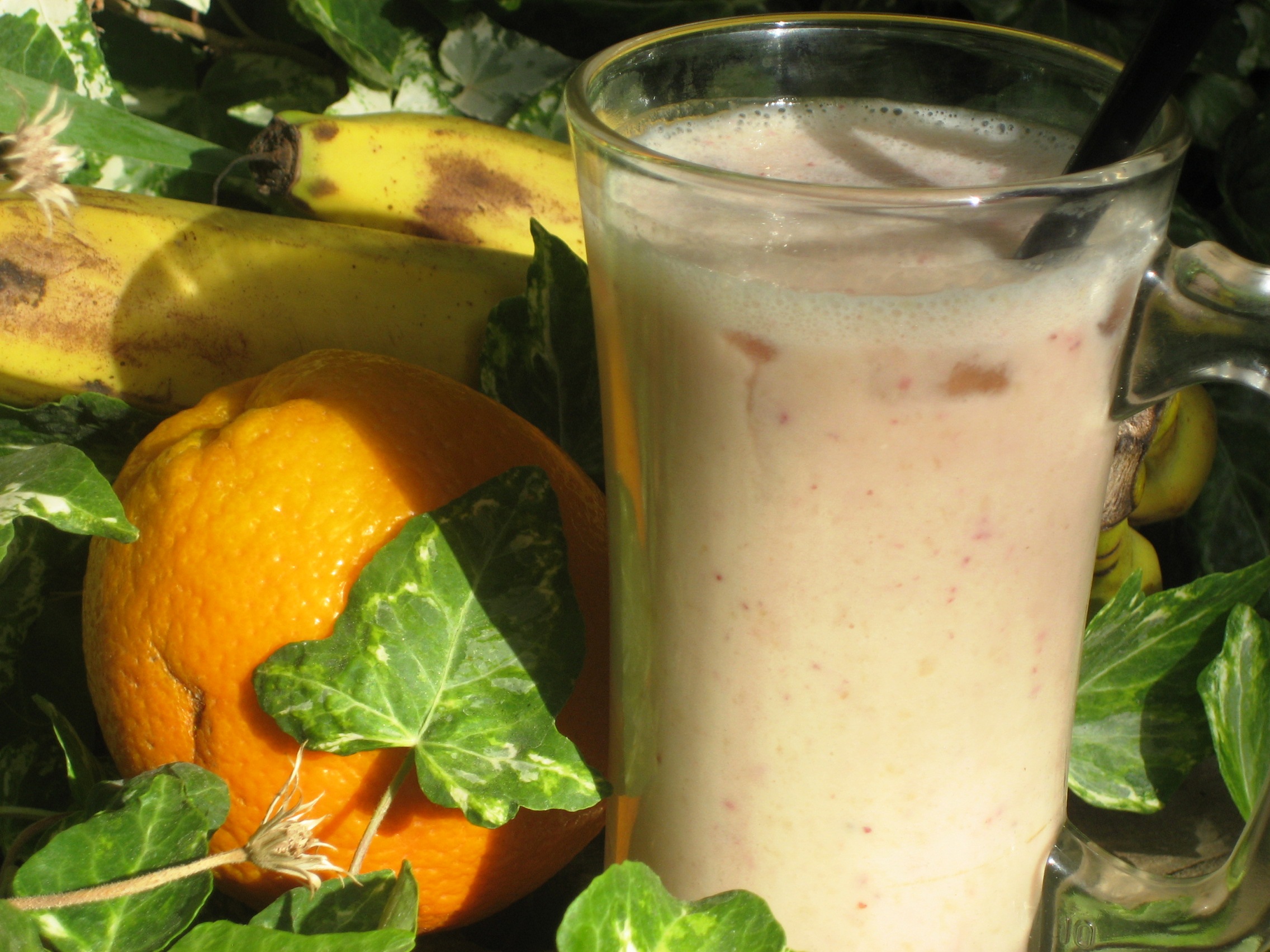 Banana Soy Milk Smoothie Banana Soy Milk Smoothie - 1 medium avocado, peeled ½ cup greek yogurt 1 medium banana 1 cup unsweetened original almond milk 1 tsp vanilla extract 3 tbs honey 6 ice cubes.