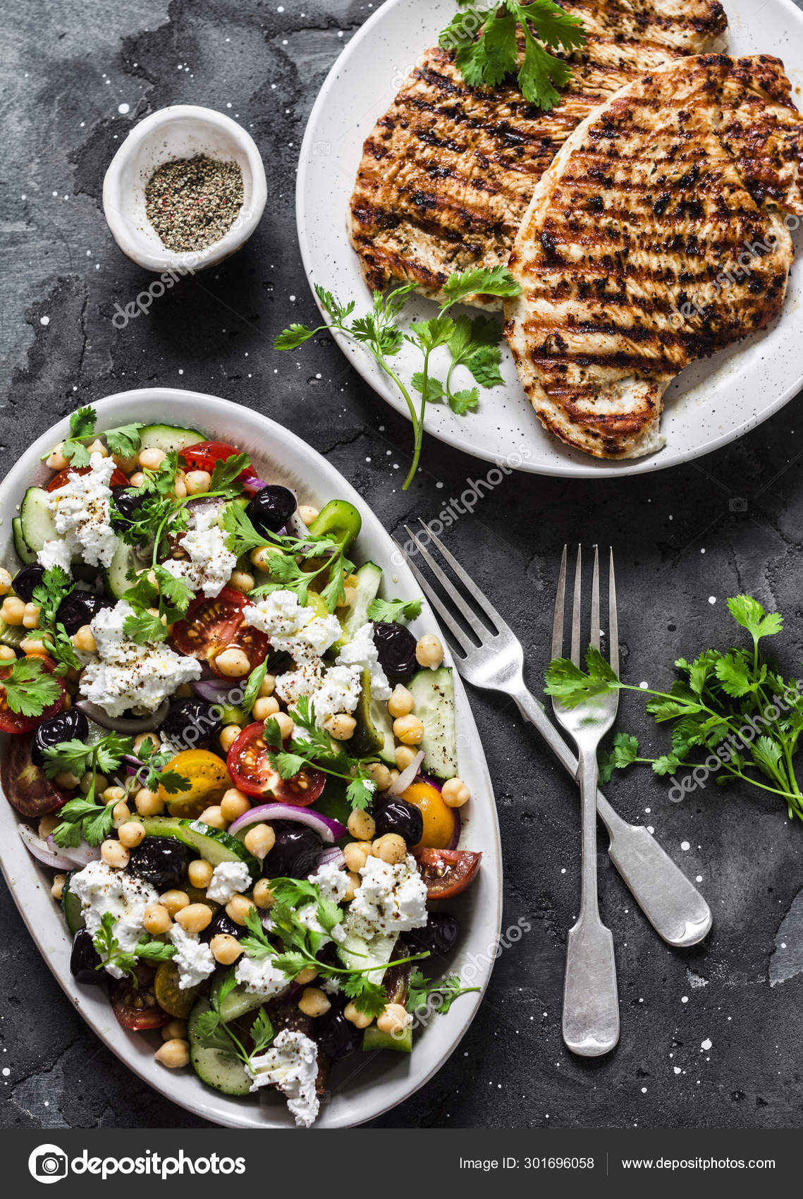 Mediterranean Style Lunch Table Greek Chickpeas Salad Pork Chops Dark Stock Photo Image By C Okkijan 301696058 - Mediterranean roasted potato salad from for the love of cooking.