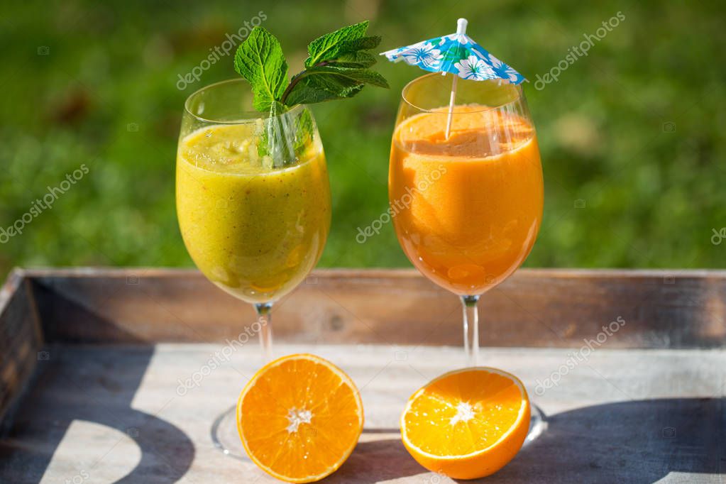 Melon Orange Smoothie / Un cocktail frais, des fruits mixes avec des glacons.