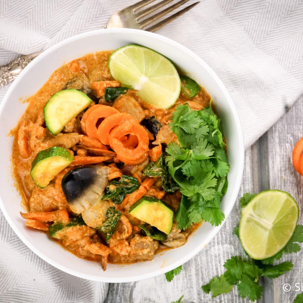 Curry Sweet Potato Noodles Slender Kitchen - · our paleo + whole30 sweet potato chicken pad thai has healthy sweet potato noodles, creamy cashew butter and coconut aminos.