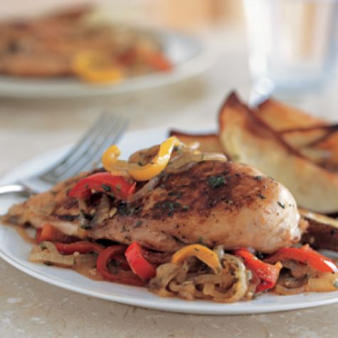 Roast Chicken With Balsamic Bell Peppers Roast Chicken With Balsamic Bell Peppers : Season chicken with salt and pepper.