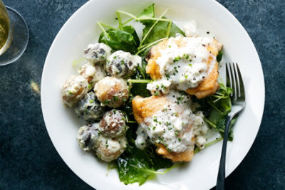 Roasted Blue Cheese Potato Salad Roasted Blue Cheese Potato Salad - Lightly stir in the chives and bacon.
