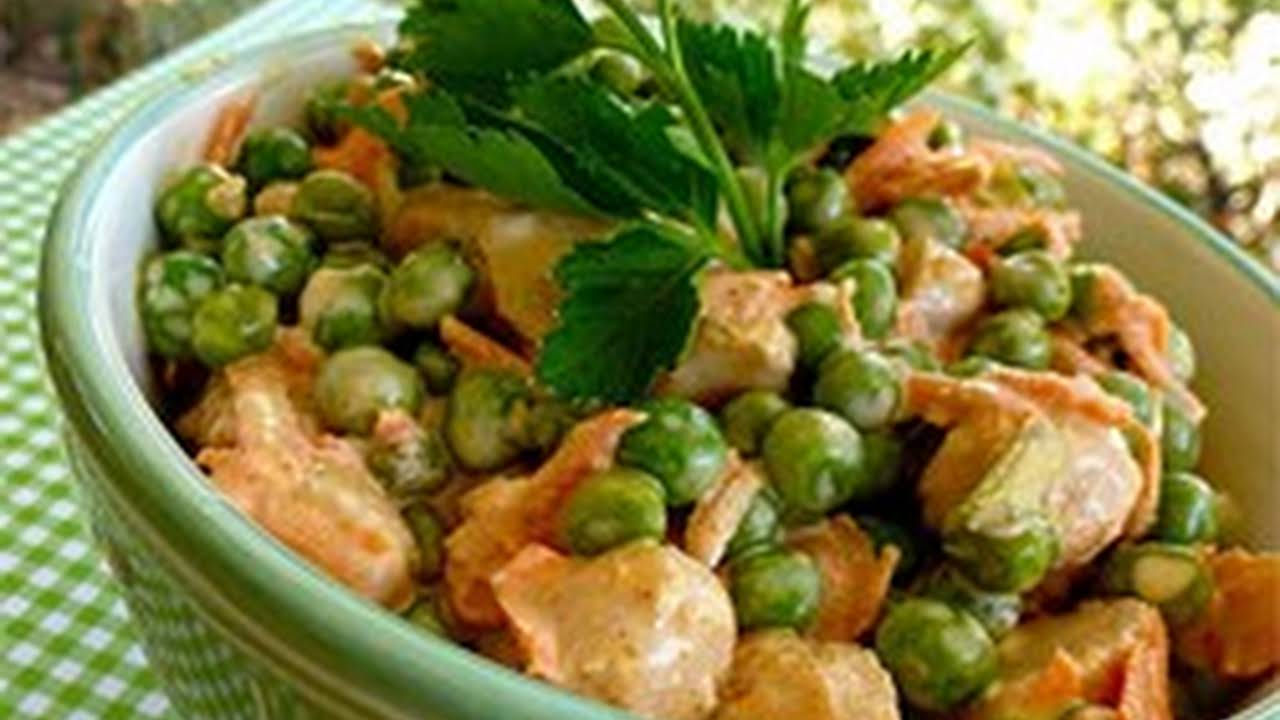 Salad With Chestnuts Salad With Chestnuts / A layered green salad with green peas, celery, bell peppers, cheddar cheese and bacon sprinkled over all.
