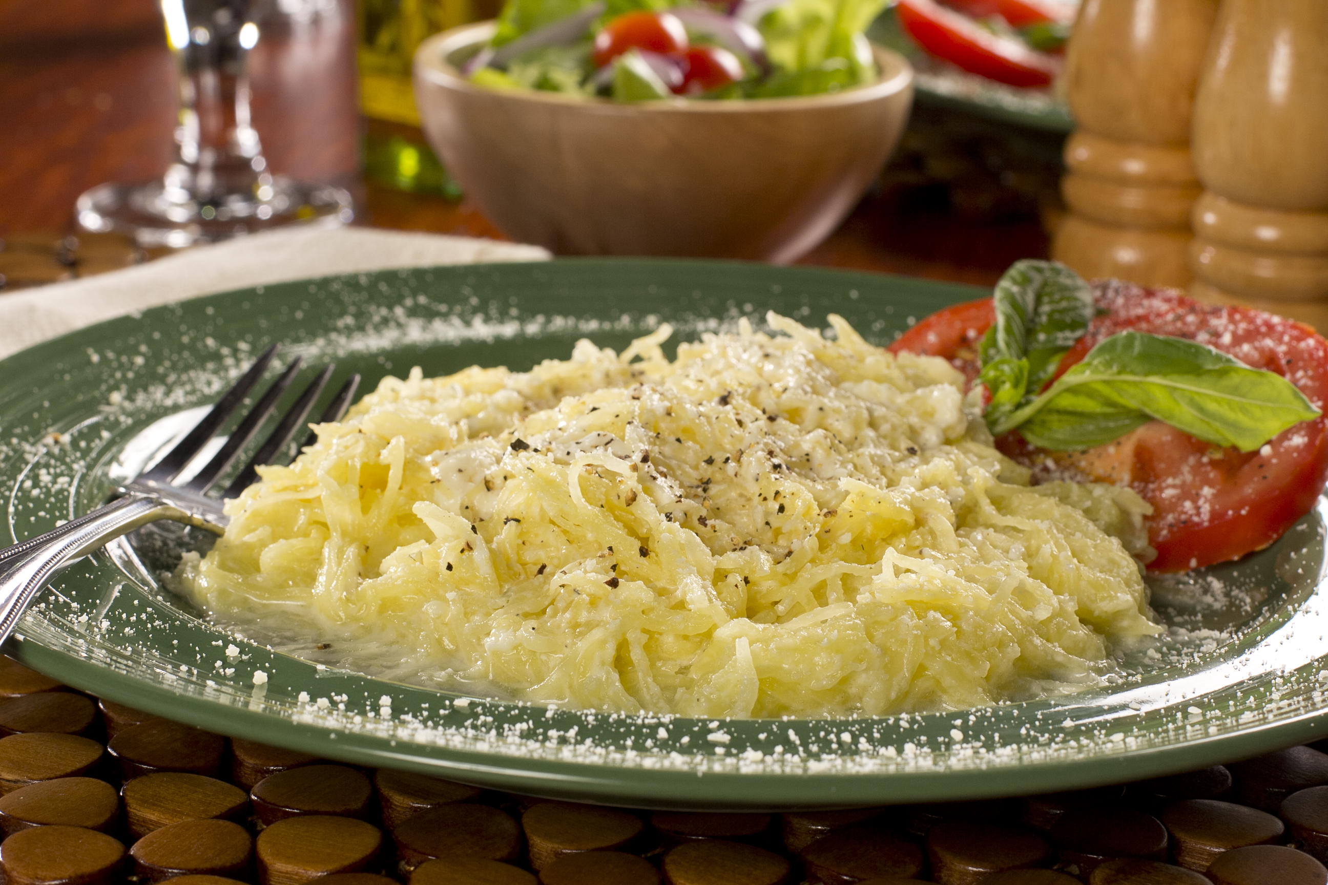 Spaghetti Squash Alfredo Spaghetti Squash Alfredo / Rich and creamy shrimp alfredo baked in spaghetti squash boats is the ultimate low carb keto comfort food.