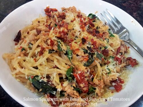 Sun Dried Tomato Salmon Pasta Sun Dried Tomato Salmon Pasta - Brown rice or some garlic and olive oil noodles go really well with this salmon.