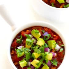 White Bean Vegan Chili Bakerita - Vegetarian chili is so hearty and filling and it's perfect for cold winter nights!